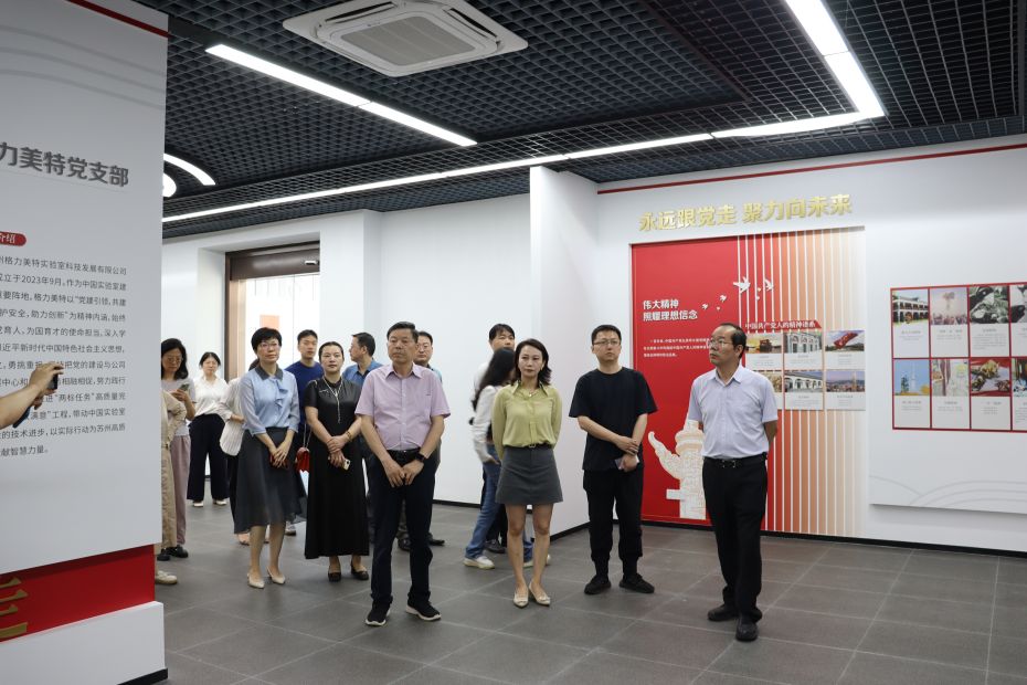 活動中,上海市蘇州商會一行首先參觀了我司企業展廳、黨建展廳等,了解了公司的業務范圍、技術實力和產品特色。在隨后的座談會上,王海軍副總裁詳細介紹了公司的發展歷程、經營理念以及未來發展規劃。商會一行也積極發言,對格力美特在實驗室創新領域的成就表示贊賞,并表達了與格力美特加強合作的愿望。