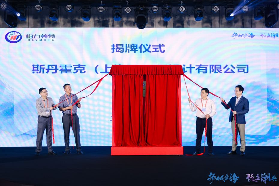 6月13日歡迎酒會現場,賓客如云,氣氛熱烈而莊重。在這充滿喜悅與期待的氛圍中,格力美特隆重發布了新成立的斯丹霍克設計研究院。由岸邁生物CEO吳辰冰、普瑞盛董事長兼總經理江龍、格力美特高級副總裁王海軍及斯丹霍克設計研究院院長楊戈共同揭牌。